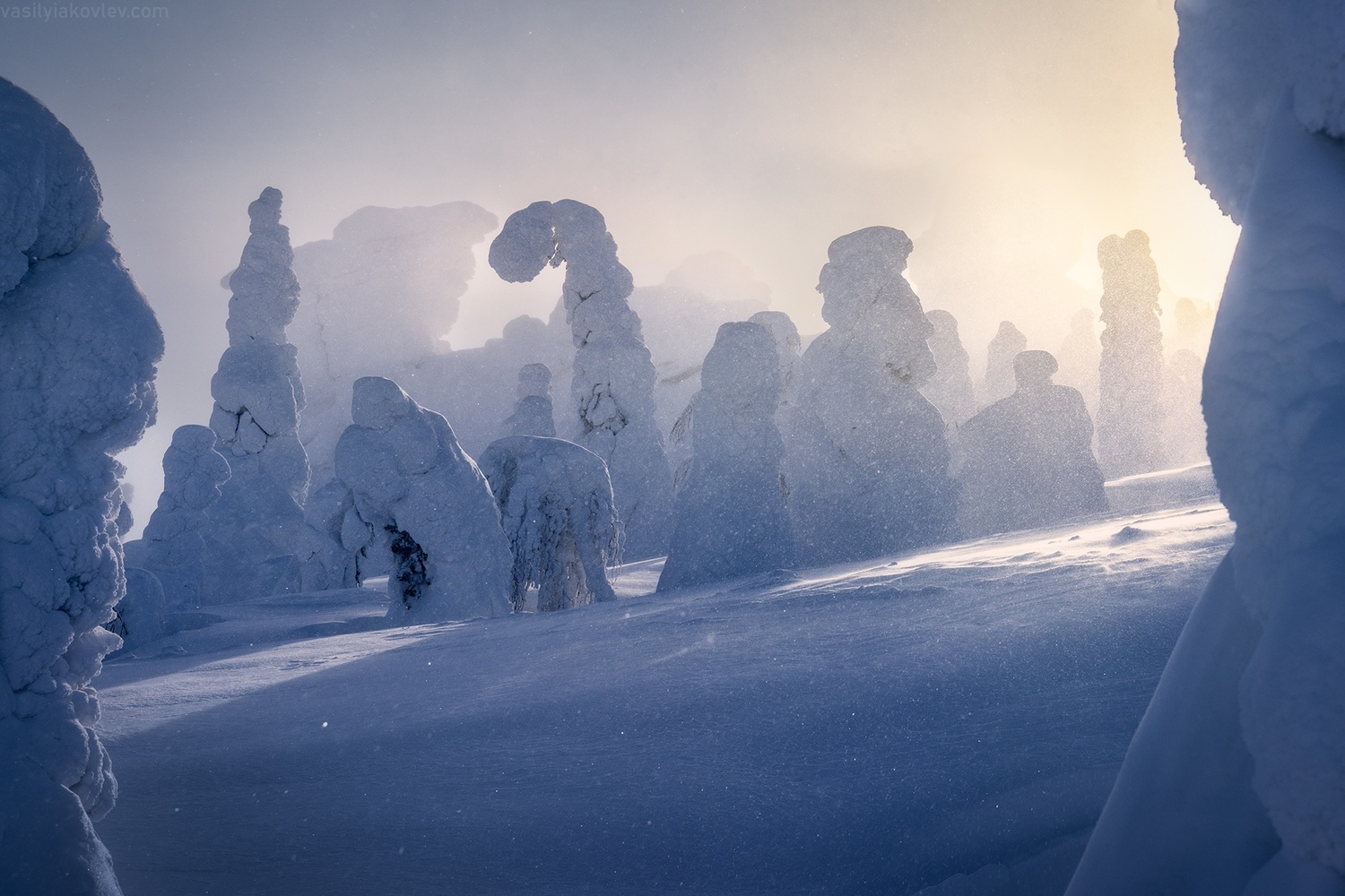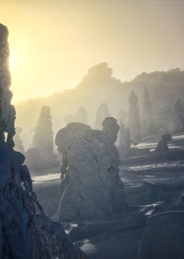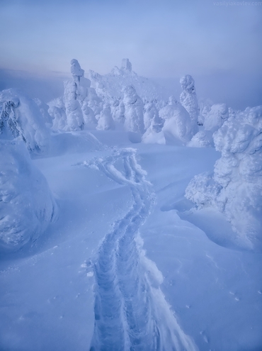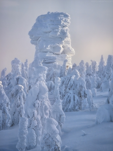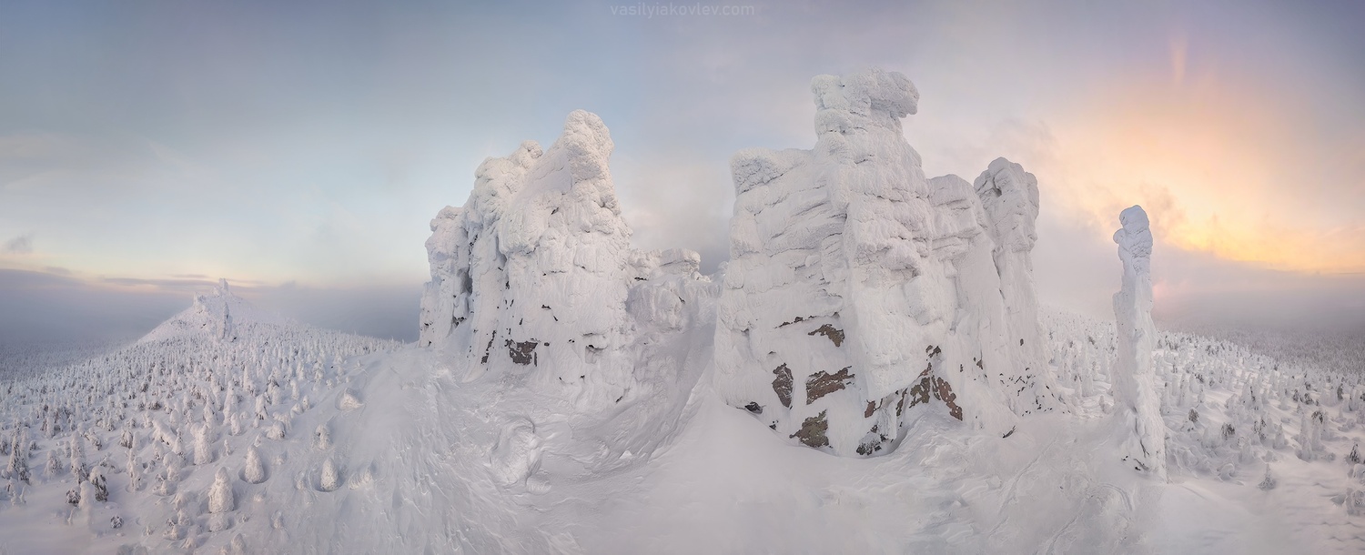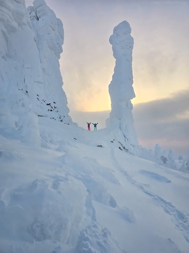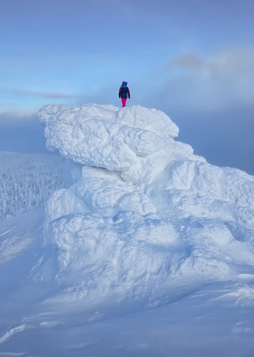 Кульминацией нашего путешествия станет Колчимский (Помяненный) Камень - одна из самых живописных вершин Северного Урала. Гряда высоких останцев самых разных форм в окружении зимней тайги - здесь на каждом шагу можно найти множество съемочных сюжетов и интересных ракурсов.